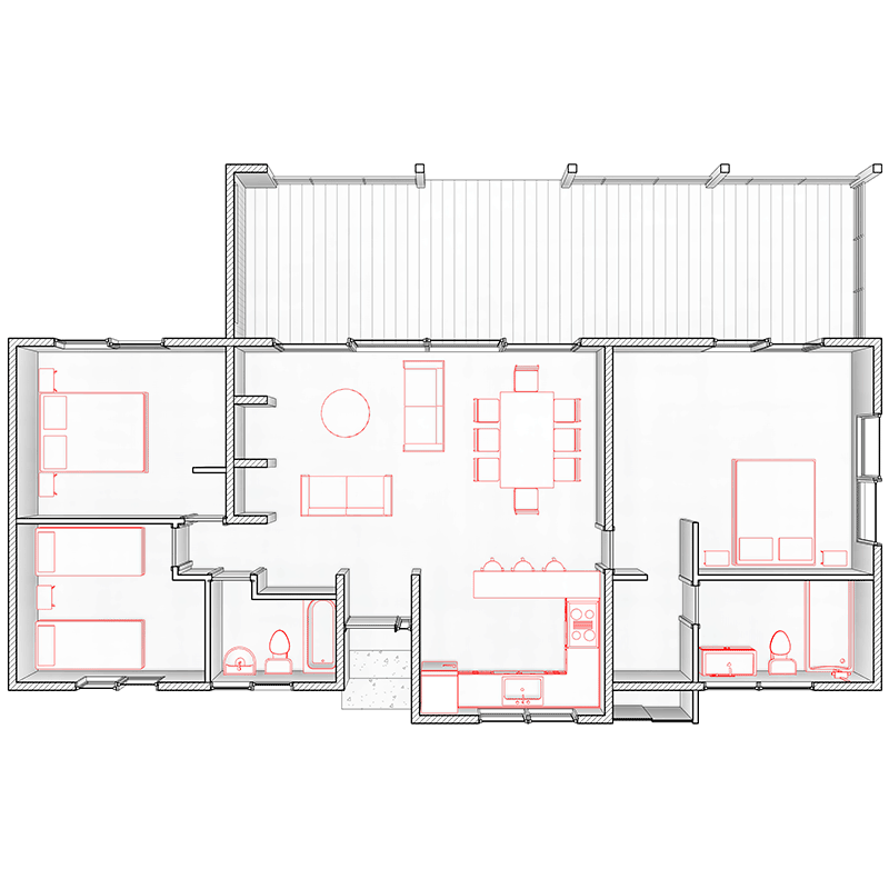 2 baños + 3 habitaciones + Estar cocina comedor.